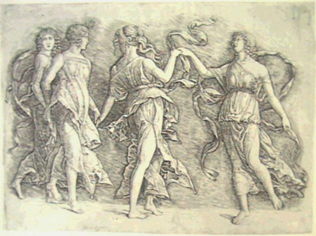 four women dancing mantegna school -